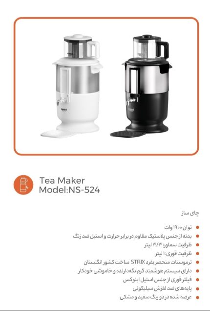 چایی ساز ناسا الکتریک مدل 514 با کیفیت وشیک دارای دو سال گارانتی شرکت ناسا الکتریک